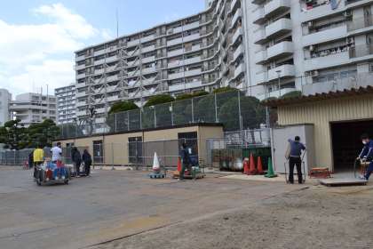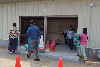 プール前に新しい体育倉庫が出来上がりました。今日は、古い体育倉庫から新しい体育倉庫へボールやハードルなどを教職員で移動しました。みんなで協力すると、あっという間でした。整理整頓され、新しい場所に置かれた用具は、なんだか息を吹き返したようにも感じました。