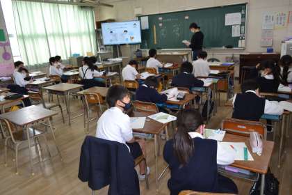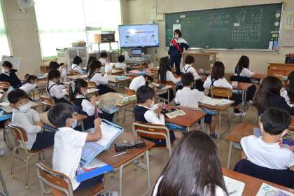 緊急事態宣言中においての登校も今日で3日目になりました。昨日は、双方向通信の試行をしていただきありがとうございました。今日は、この形態が始まって3日目になりました。さすがに、学習方法やリズム、4時間目の活用方法なども上手にできるようになってきました。給食も落ち着いて食べている状況です。