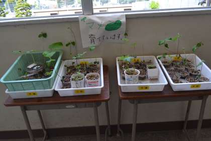 5,6年生の理科の学習では、発芽のこと。メダカのことなど、常に観察できるように楼観セットしています。