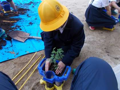 2年生は、今日の3時間目1組、4時間目2組が生活科の学習でした。緊急事態宣言中でなかなか、クラスそろっての活動ができませんでしたが久しぶりに外にでて、ミニトマトの苗を鉢に移しました。管理作業員さんに手伝ってもらい、添え木をしました。「心を込めて水やりしよう」「あまいミニトマトができたらいいな」と子どもたちは、とてもいきいきした表情でした。限られた時間、たくさんの経験をしてもらいたいと思います。