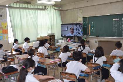 今日の9時から校長室と各教室をオンラインで結んで、校長からの話を全校児童にしました。本校では、今日を「いじめについて考える日」として位置づけて、全クラスでいじめについて考えることにしました。