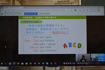 放課後には教員対象の外国語研修を実施し、学習の進め方や評価の仕方について、理解を深めることができました。