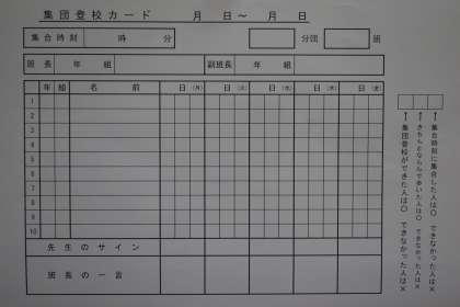 大東小学校では、月に一度、分団での集団登校の仕方を確認、点検するための「集団登校強調週間」を実施しています。