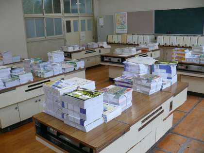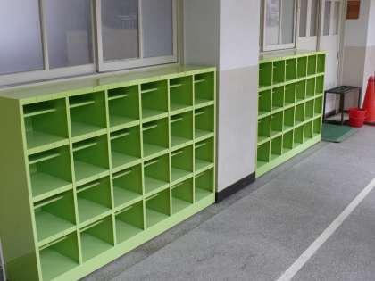 真新しい教科書も届きました。新1年生の下駄箱も管理作業員さんが児童が喜ぶようにときれいに塗りなおしてくれました。