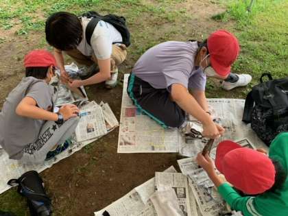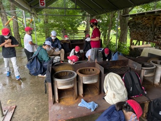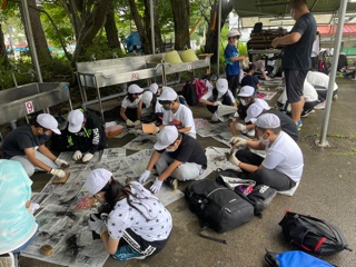 焼き板には林間学習の思い出や出来事などを好きな色の絵具ペンを使って、絵や文章をかきます。