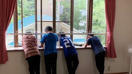 アイスクリーム作り、焼き板作りが終わったところで、各生活班の部屋に分かれて、お家宛ての手紙作りをしました。子どもたちは、ハチ高原に来て過ごした感想や、活動をしての感想など、1日目の様子を中心に書いていました。どんなことを書いているのかは、届いてからのお楽しみです。