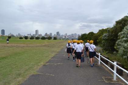 今日の5・6時間目に4年生が総合的な学習の時間で、淀川に行きました。