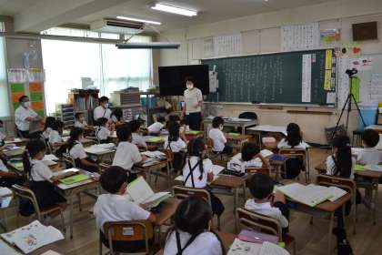 大東小学校では、今年度、国語を重点に先生たちの授業力の向上を目指しての取り組みをしています。授業力を向上させることで、子どもたちの意欲の向上、維持、学力の向上につながることを目指しています。