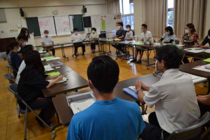 今日は、1年生が公開授業をして、全教員が参観し、教材のこと、授業の進め方、ワークシートなど、さまざまな視点で、意見交換をしながら一人一人の授業力の向上につなげていこうと取り組んでいます。