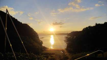 今朝のホテルからの景色です。とてもきれいな朝日です。