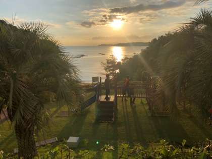 朝の集いのあと、朝食までの少しの時間も、友だちと楽しく過ごしています。