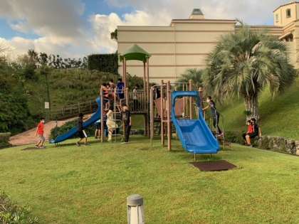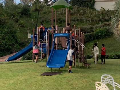 遊具で遊ぶ子どもたち、みんな元気に過ごしています。