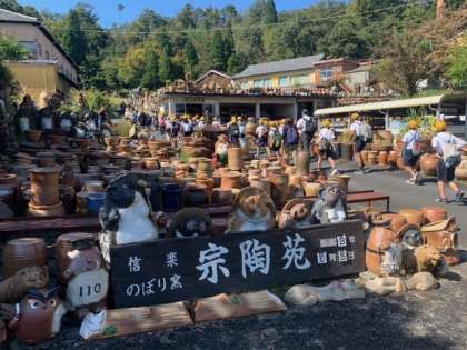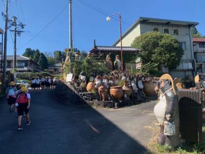 名物のたぬきの陶器たちが6年生一行を出迎えてくれました。