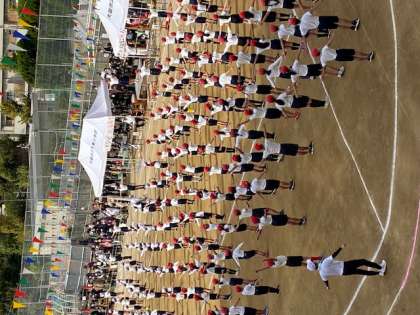 プログラム1番 ラジオ体操 体の各部位を十分動かし、準備はOK、スタートです。