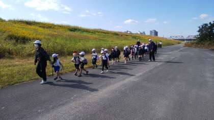 城北公園までの往復、徒歩の遠足でしたが、今後の学校外でのマナーやルール、交通安全などの学びをしました。