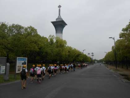 5年生が、春の遠足で「鶴見緑地公園」へ行きました。登校時は、雨もパラパラとして天気が心配されましたが、次第に天気も良くなり、プログラムも予定通り行うことができました。