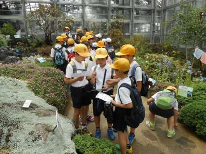 まずは、咲くやこの花館の見学です。グループで行動し、植物に関するクイズに答えます。