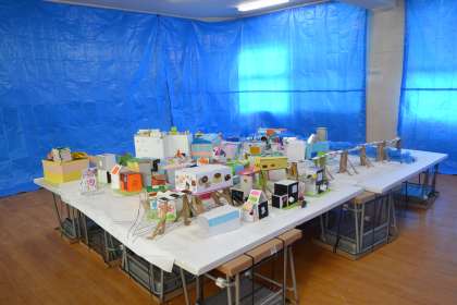 例年は、講堂で、全学年が一堂に会して、盛大に作品展をするのが、大東流でした。今年度の作品は、残念ながら、講堂の建て替え工事のため、特別教室、空き教室を活用しての開催になりました。