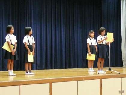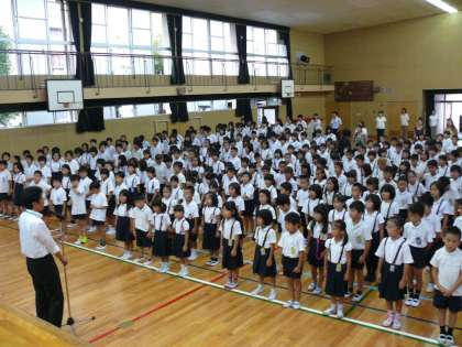 「おはようございます」久しぶりに子どもたちの顔を見てあいさつをすることができました。子どもたちには、2学期になってまず始めにしなければならないことは、「さあ、2学期もがんばろう!しっかりやるぞ!」という気持ちを取り戻すことだと話しました。今学期もご協力・ご支援の方よろしくお願いします。
