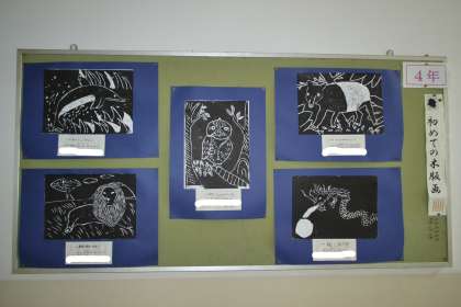 2枚目の写真が4年生の木版画です。版画は毎年制作していますが、4年生から彫刻刀を使っての制作がはじまります。それぞれ好きな動物を題材に作品を完成させました。