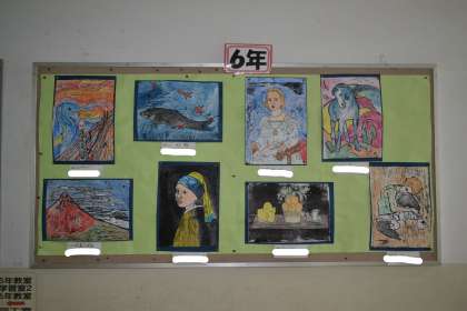 3枚目は6年生のカラー版画です。世界の名画を題材に色鮮やかに完成させました。