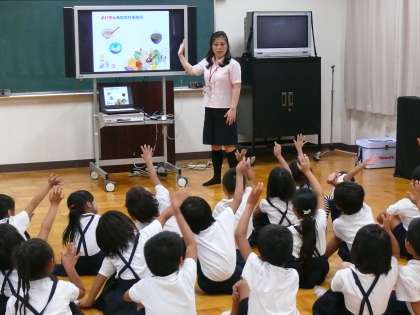1学期には、栄養教諭の先生の出前授業、2学期は、食品会社からの出前授業と、工夫を凝らしながら、「食」についての学習を行っています。