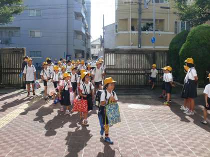 「あいさつ・集団登校」の強調週間については、1年間を通して、行っています。今月の当番は、○○分団○班というように、登校班が順番に請け負っています。
