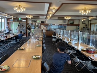 お腹が空いてきました。ちょうど夕食の時間です。食事係が説明を聞いています。