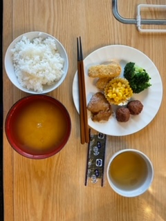 今日も一日しっかり活動しましょう。朝食の時間です。「いただきます」
