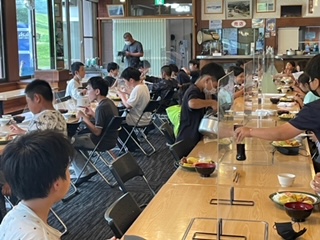 2日目の夕食です。みんなおなかぺこぺこです。「いただきます」