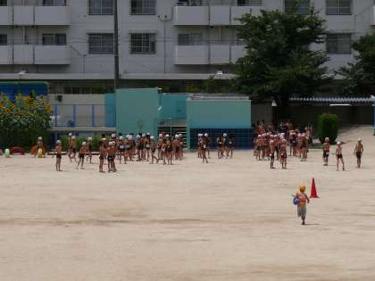 夏休みが始まって、梅雨も明けて、暑さが本格的に厳しくなりました。朝から、蒸し暑い夏休みの初日。大勢の児童が、プール開放に訪れました。