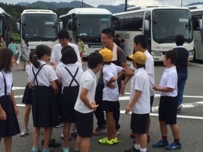 で、ここで、サプライズがおきました。というのも、昨年度のこの学年の担任でこの4月の転勤された先生も偶然、林間学習にまほろばで休憩中でした。