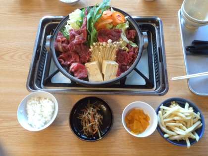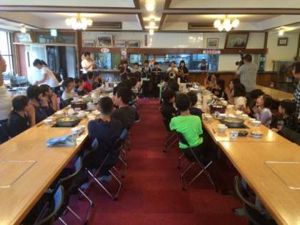 今日の夕食は、すきやきでした。冷房のきいた食堂で、おいしくいただきました。