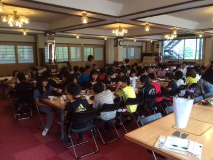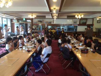 おいしい空気とおいしい朝食。しっかり食べて、さあ、今日の活動に備えるぞ。