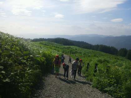 「わーすごいきれいな景色」「すごくいいながめ。」など鉢伏高原を堪能しながら、オリエンテーリングを進めています。