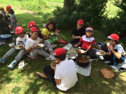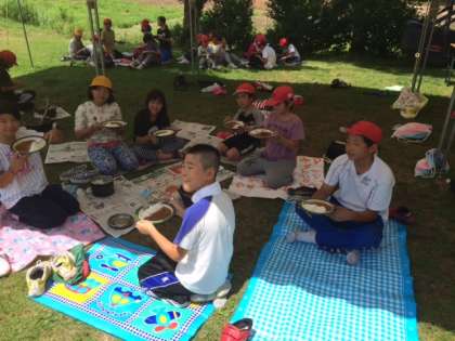 グループごとになかよく食べているところです。会話も弾むことでしょう。