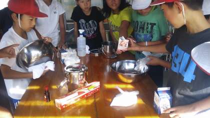 2日目の活動も順調に進み、アイスクリーム作りに入りました。