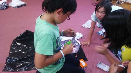 2日間が過ぎ、思い出もたくさんできて、ちょうどよかったのかもしれません。各自が思い思いの思い出を焼き板に表現しました。