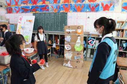 当日は、前半、後半に分かれて、お店番とお店巡りを楽しみました。お店番やお店巡りでは、高学年の児童が下級生に対して優しく接し、下級生も大東まつりを満喫することができました。