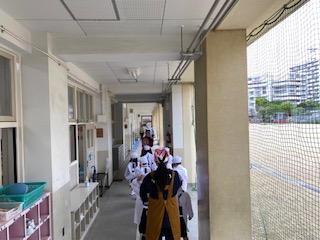 1年 給食当番 出発します