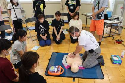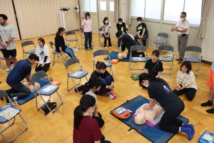 万一があってはいけませんが、水泳指導前に研修を毎年することで、何かあった時のために急な場合に備えて子どもたちの安全、命を守ることができるように万全を期しています。