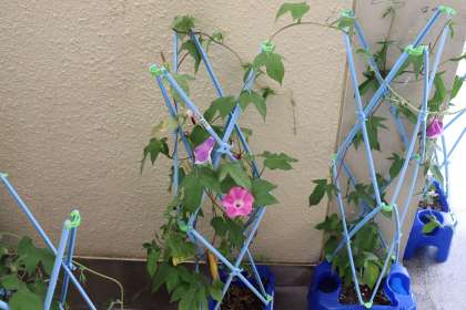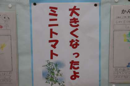 2年生は、トマトを育てました。トマトの実がカラスに食べられたこともありましたが、今では、大きなトマトがたくさんなっています。