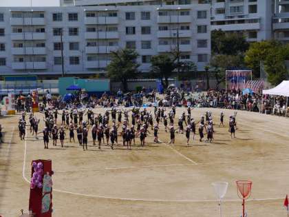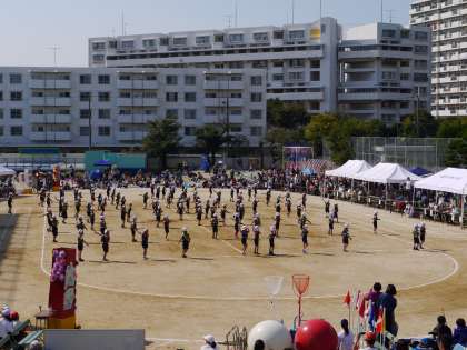 1年生にとっては初めての運動会、演技です。ちょっと緊張しているようですが、元気に踊っています。2年生は1年生の見本になるほど、上手に踊っています。