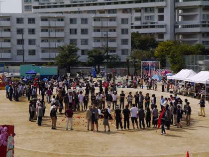 来賓・PTA・教職員による玉入れです。子どもたちも大声で応援して数をかぞえて、大喜びでした。