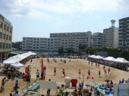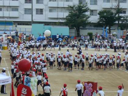 まずは、応援合戦で、午後からの競技に気合を入れます。子どもたちはまだまだ元気いっぱい応援しています。