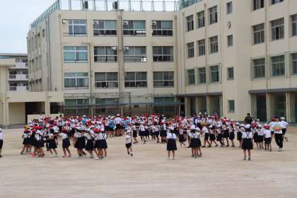 今朝、運動場にて2学期1回目の児童集会を行いました。