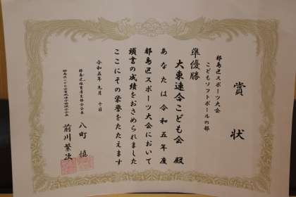 ゲーム集会の前に、都島区スポーツ大会子どもソフトボールの部において、「準優勝」したソフトボールチームのメンバーに対して、校長先生から表彰状の授与がありました。