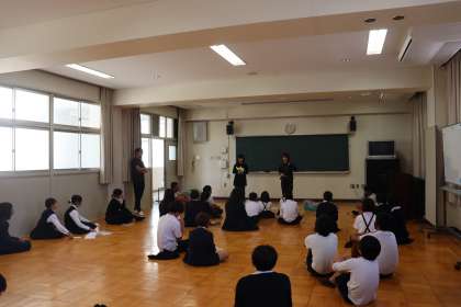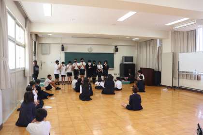 今日の昼休みに、多目的室で令和5年度の応援団の解団式が行われました。