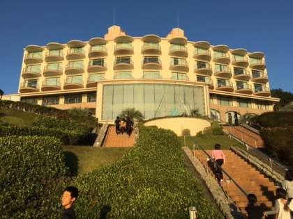 児童が、宿泊したホテルを東から撮った外観です。全室オーシャンビューの部屋から、志摩の海が眺められました。