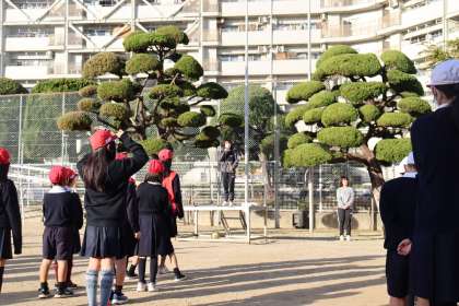 今日の児童集会は運動場で「バナナおにごっこ」をしました。